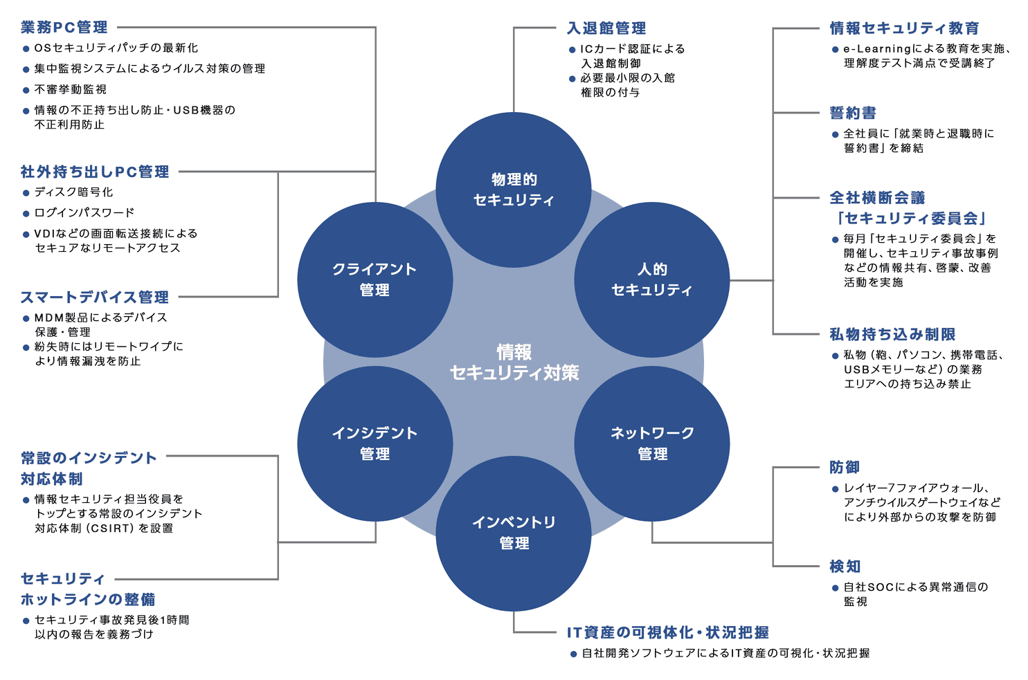 当社は以下のとおり、セキュリティ対策を講じており、セキュリティ事故の未然防止に努めています。