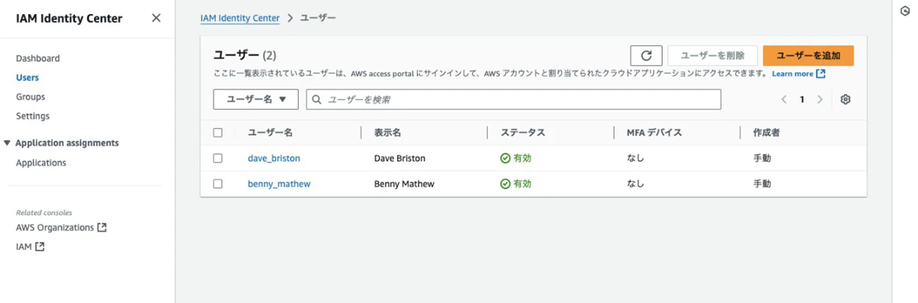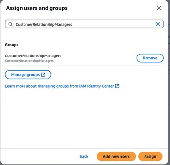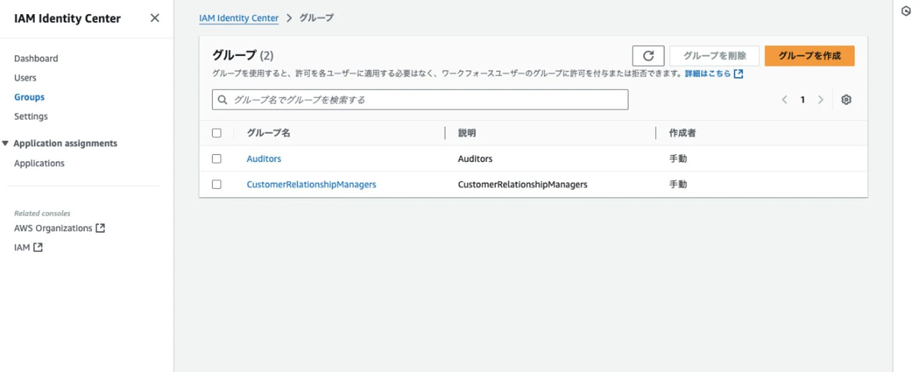 Identity Centerグループ:CustomerRelationshipManagersを追加します。