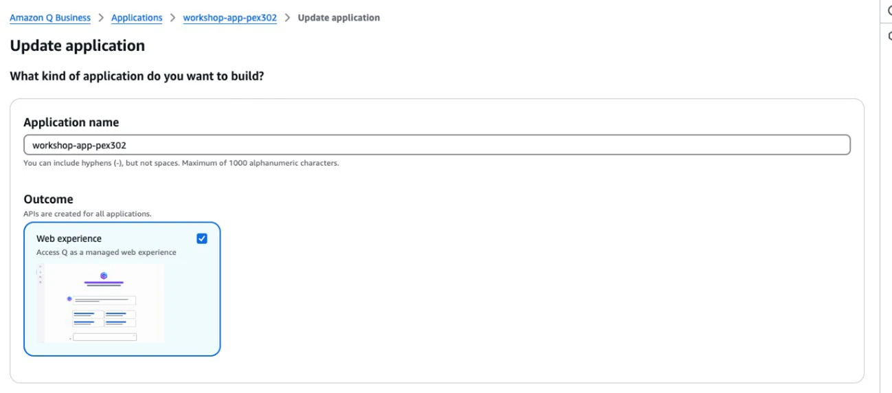 本ワークショップで事前に用意された、Amazon Q Businessアプリケーションを更新します。
