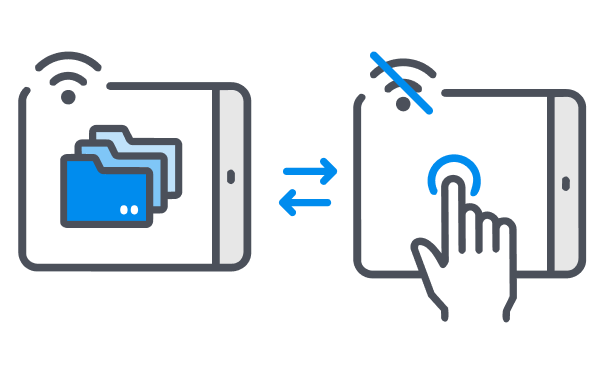 帳票の事前ダウンロードにより、電波の届かない地下やトンネル、工場内の奥まった場所でもオフラインでの入力が可能です。オフライン利用に便利なネイティブアプリもご用意しています。(iPad OS/Windows対応)