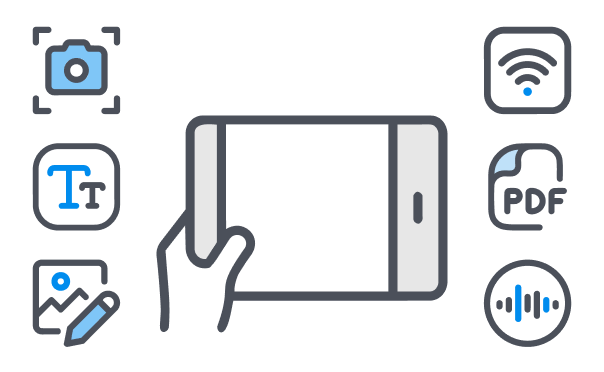 (音声・カメラ・図面・マニュアル)スムーズな入力を実現するため、騒音下でも使える「音声入力」や、入力ミスを防ぐ「閾値チェック」など多彩な機能を備えています。他にもPDFや動画マニュアルのワンタップ表示や、撮影した写真に残せる手書きメモなど、現場に喜ばれる機能で業務をサポートします。