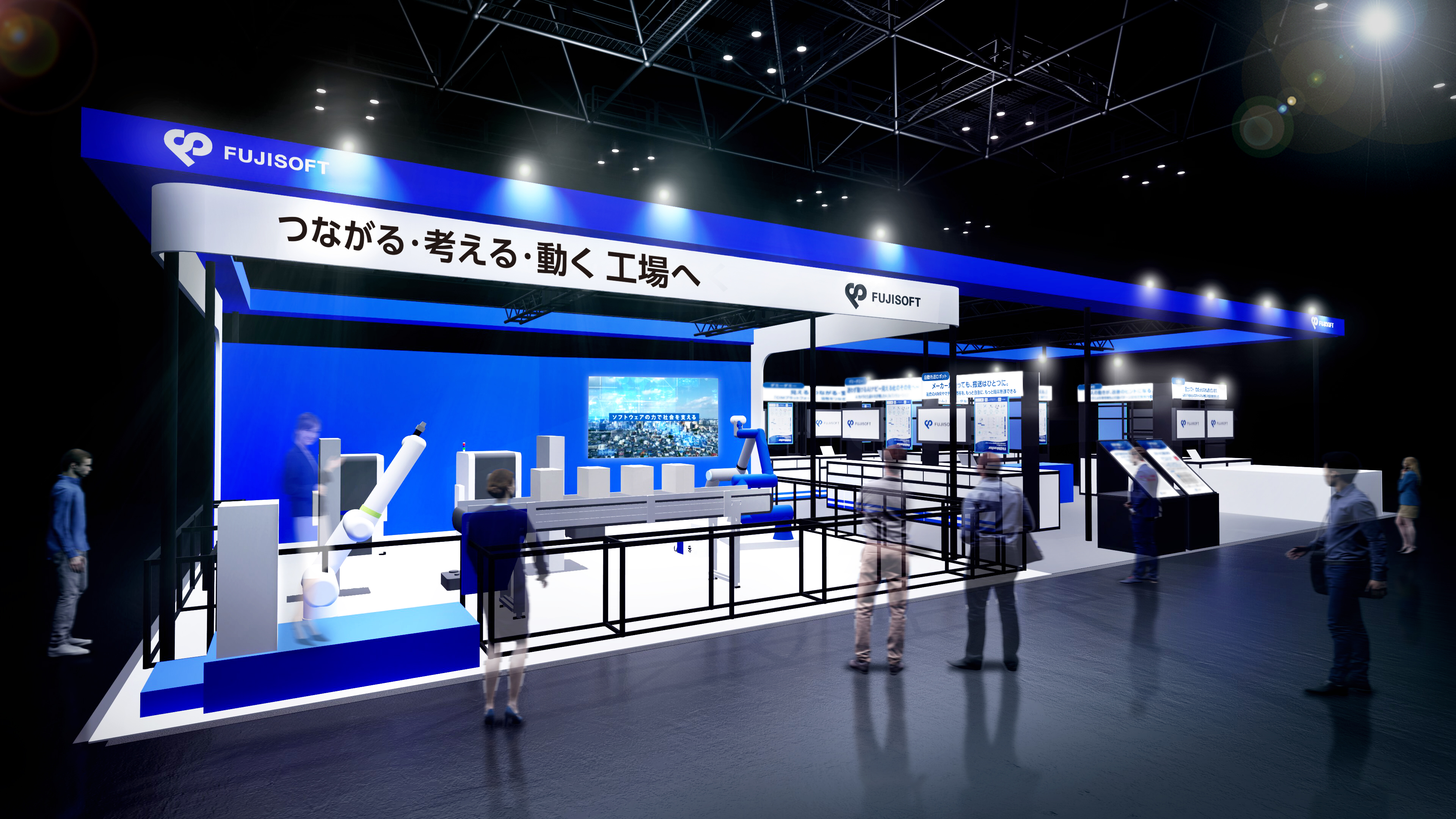 私たちのテーマは、 『つながる・考える・動く 工場へ』。「人と機械」「人と人」「システムと現場」がつながることで、工場は考え、そして動き出します。現場課題の解決とDX推進を支えるスマート工場の未来を是非、富士ソフトブースでご体験ください。