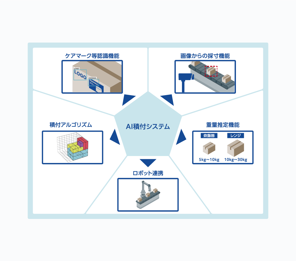 AI×ロボット×カメラで荷物のサイズ、形状を判別し、ロボットによる最適な積付