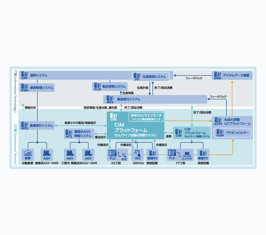 多様な工場設備との連携、自動化、長時間重労働の軽減化、とDX推進を支えるスマート工場技術を展示します。