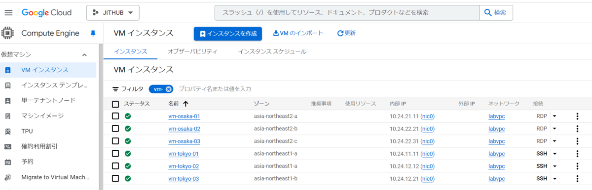 - gcloud compute instances create vm-osaka-03