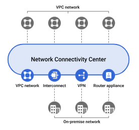 この課題を解決するためにGoogleが提供するのが、Network Connectivity Center (NCC) です。NCCは、実績のある「ハブ&スポーク」アーキテクチャを採用し、複数のVPCやオンプレミス接続(VPN/Interconnect)を単一のハブで一元管理します。これにより、シンプルでスケーラブルなネットワークトポロジを実現します