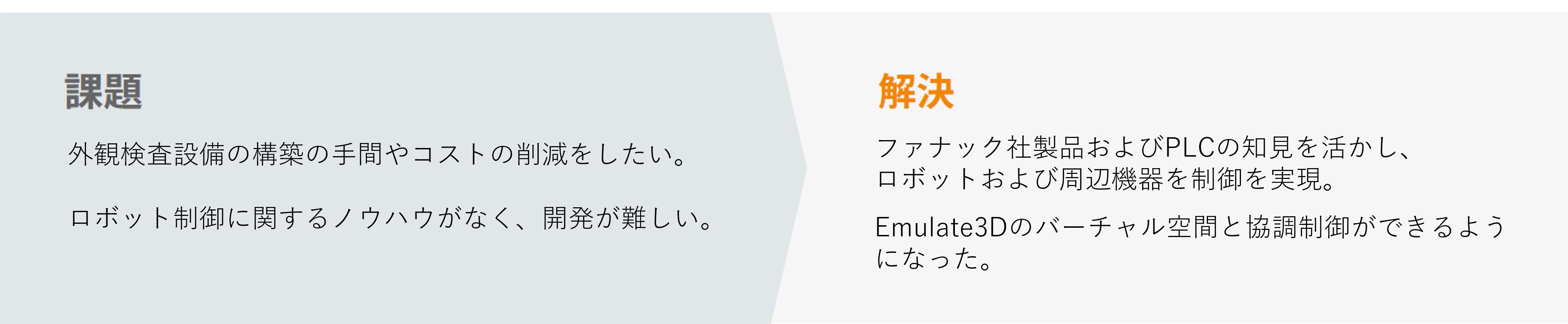 当社で一貫して行うことが可能です。そしてEmulate3Dをはじめとするデジタルツインの実現により、開発コストの削減もご提案することが可能です。