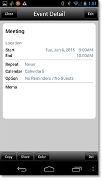 The detail screen will be displayed. Then tap Delete. The event will be deleted. And you will return to the day view screen.   Task Screen