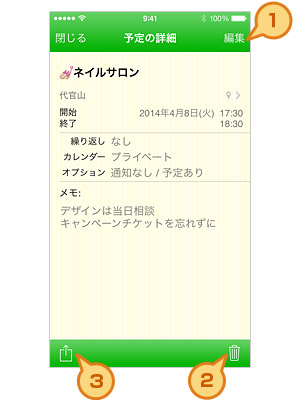 予定の詳細画面を呼び出す方法