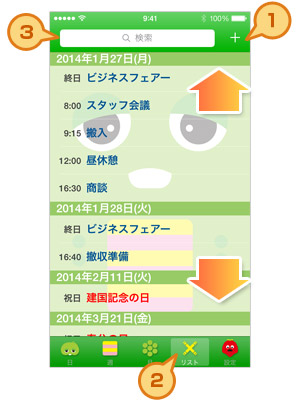 前後の予定は上下に指を滑らせて確認してね。
