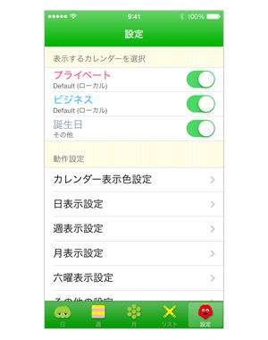文字の色や大きさ、週の開始曜日など、さらに細かい設定をしたい人は、動作設定の各項目をタップしてお好みの設定にカスタマイズしてみてね!