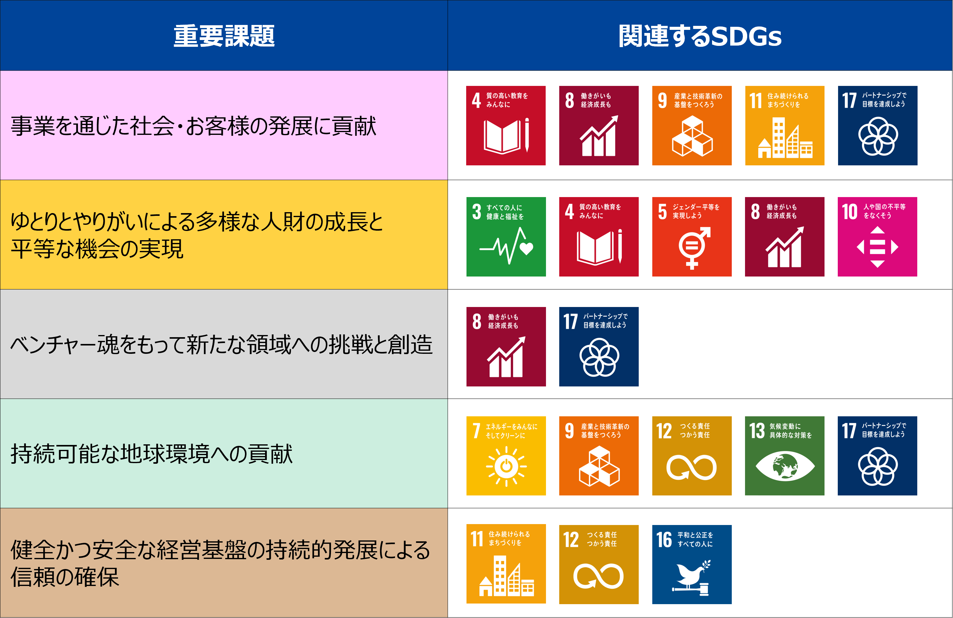 当社の重要課題とSDGs