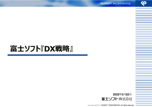富士ソフトは、業務効率化や生産性向上にとどまらず、ビジネスモデル自体をも変革するDX(デジタルトランスフォーメーション)を牽引するデジタル企業の代表として、お客様のデジタル化を牽引し競争力向上への貢献を目指して取り組んでまいりました。2022年に「DX戦略」を策定し、「DX認定事業者」として認定されました。